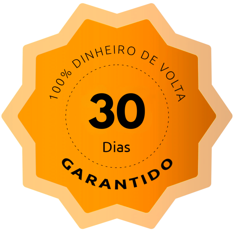 Caso decida que não valeu a pena, você pode pedir um reembolso em até 30 dias depois da compra e receber 100% do seu investimento de volta, sem fazer nenhuma pergunta, e sem burocracias.